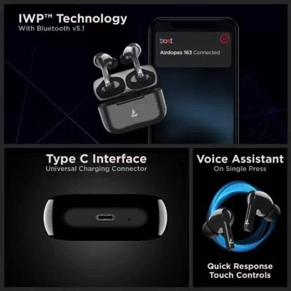boAt Airdopes 163 Bluetooth Headset (Active Black, True Wireless)