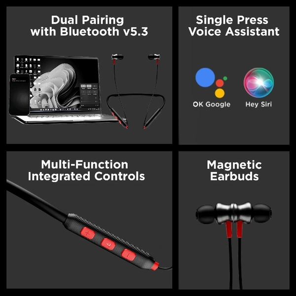 boat rockerz 185 pro Wireless Neckband Bluetooth 5.3 10 meters Wireless Range 10mm Drivers Playtime 20 Hours Enx Tech Magnetic earbuds Single press voice assistant IPX4 water resistance