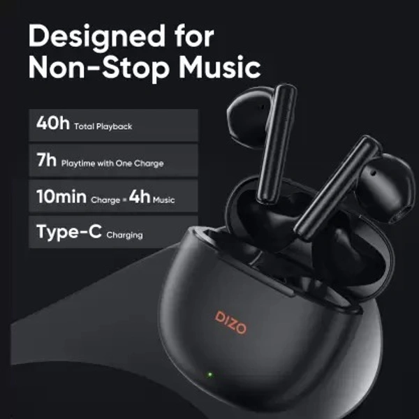 DIZO Buds P with Fast Charge, 40HPlaytime & 13mm Driver (by realme TechLife) Bluetooth Headset (Dynamo Black, True Wireless) open box