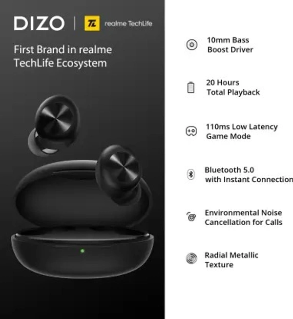 DIZO by realme TechLife GoPods D with Enviornment Noise Cancellation (ENC) Bluetooth Headset (Black, True Wireless) open box