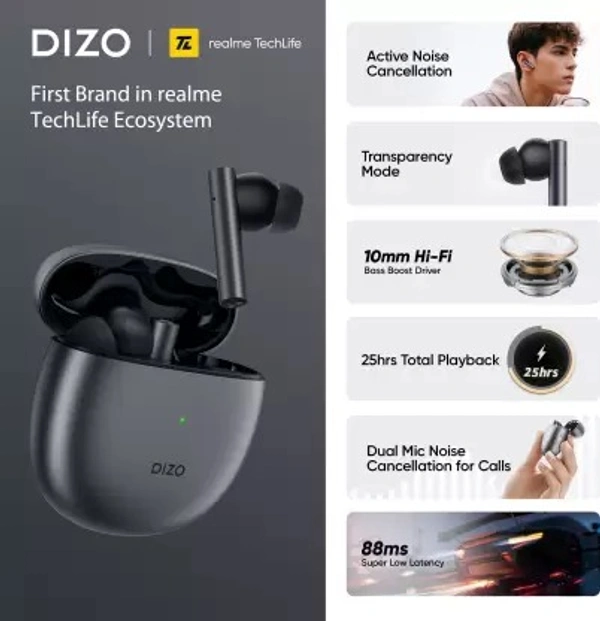 DIZO by realme TechLife GoPods with Active Noise Cancellation(ANC) Bluetooth Headset True Wireless) open box