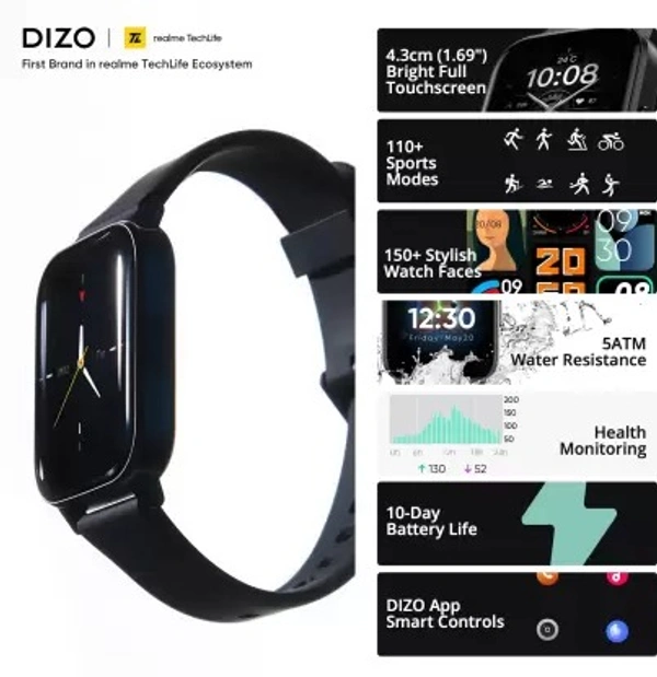 DIZO Watch 2 Sports (by realme TechLife) (Black Strap, Free Size) open box