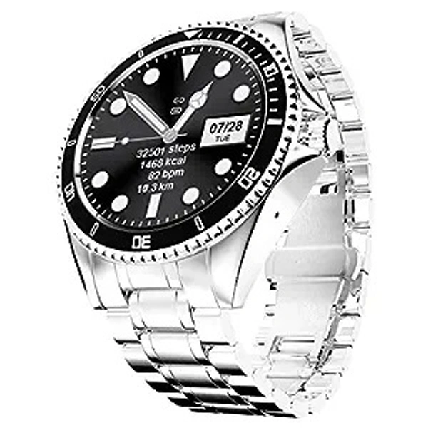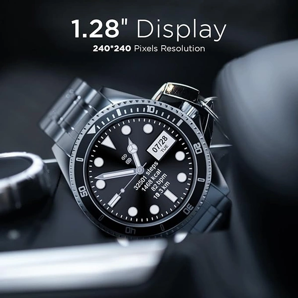 Fire-Boltt Quantum Luxury Stainless Steel Design 1.28" Bluetooth Calling Smartwatch with High Resolution of 240 * 240 Px & TWS Connection, SpO2 Tracking with 100 Sports Modes (Black)