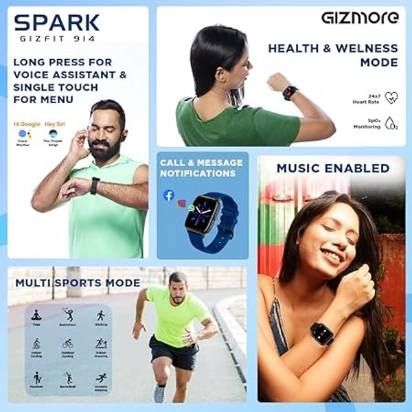 GIZMORE Spark smartwatch with Advanced BT Calling 1.69" IPS Display, SpO2, 100 Sports Mode with Auto Detection, Upto 7 Days Battery (2 Days with Heavy Calling)