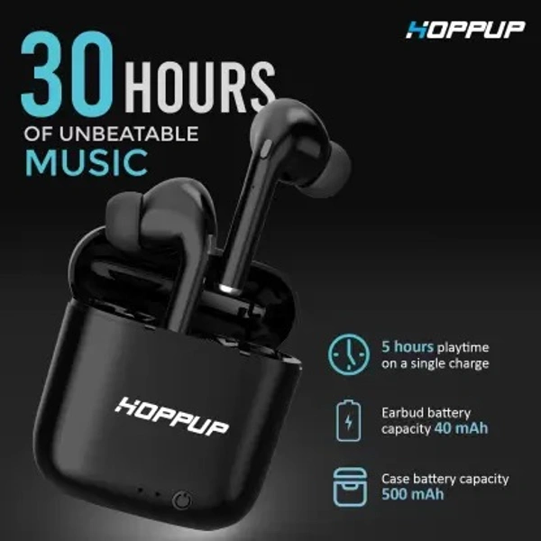 HOPPUP Jumbo with 30 Hours Playtime Bluetooth Headset (Black, True Wireless)