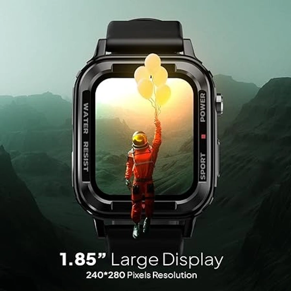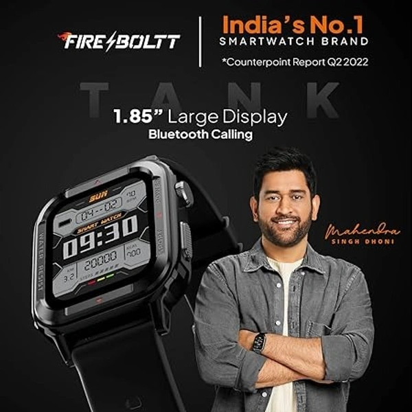 ( OPEN BOX )Fire-Boltt Tank 1.85" Outdoor Rugged Bluetooth Calling Smart Watch, 123 Sports Mode, 8 UI Interactions, Built in Speaker & Mic, 7 Days Battery (Black)