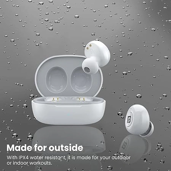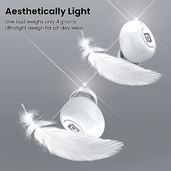 Portronics Harmonics Twins S3 Smart TWS Bluetooth 5.2 Earbuds with 20 Hrs Playtime, 8mm Drivers, Type C Charging, IPX4 Water Resistant, Low Latency, Lightweight Design(White)