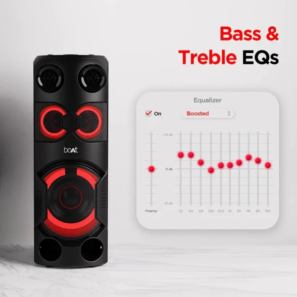 ( Refurbished )boAt PartyPal 200/208 70W RMS Stereo Party Speaker with Stunning LEDs, Multi Compatibility Modes,7HRS Playtime, Bluetooth TWS Feature,Mic for Karaoke,Dual EQs, FM, Master Remote Control(Phantom Black)