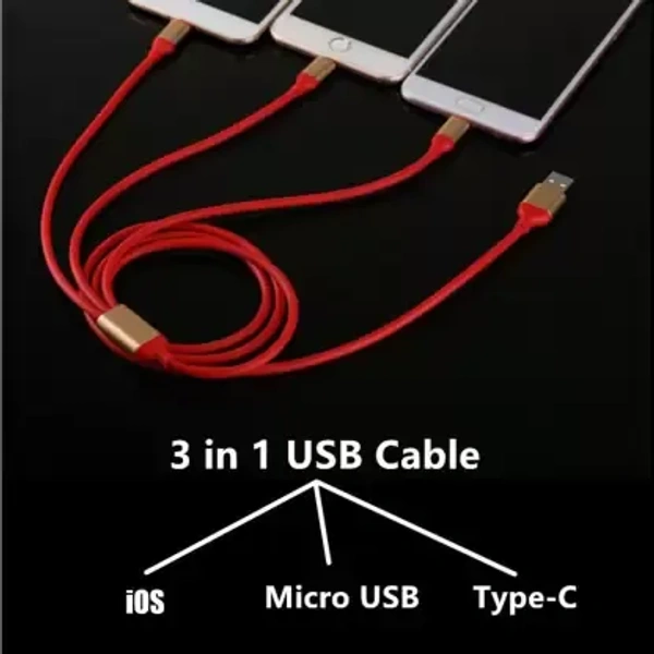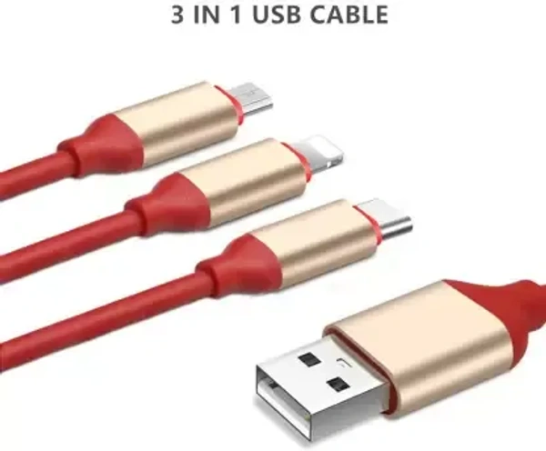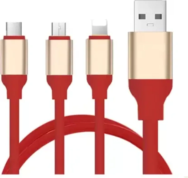 studlike store Micro USB Cable 20 m Red Colour 3 in 1 TPE Material Multi USB Cable for iOS, Micro and Type-C, Charges 3 Phone at Same Time, 1.2meter Long, 2.1 A Output (Compatible with Android, Type-c, iOS, Red)