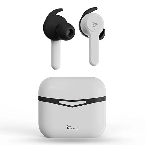 SYSKA Sonic Buds IEB900 Earbuds with 50Hr Play Time, auto ENc Tech, Low Latency, IPX4, 13mm Drivers for Deep Bass, Type-C Charging (Pristine White, True Wireless)